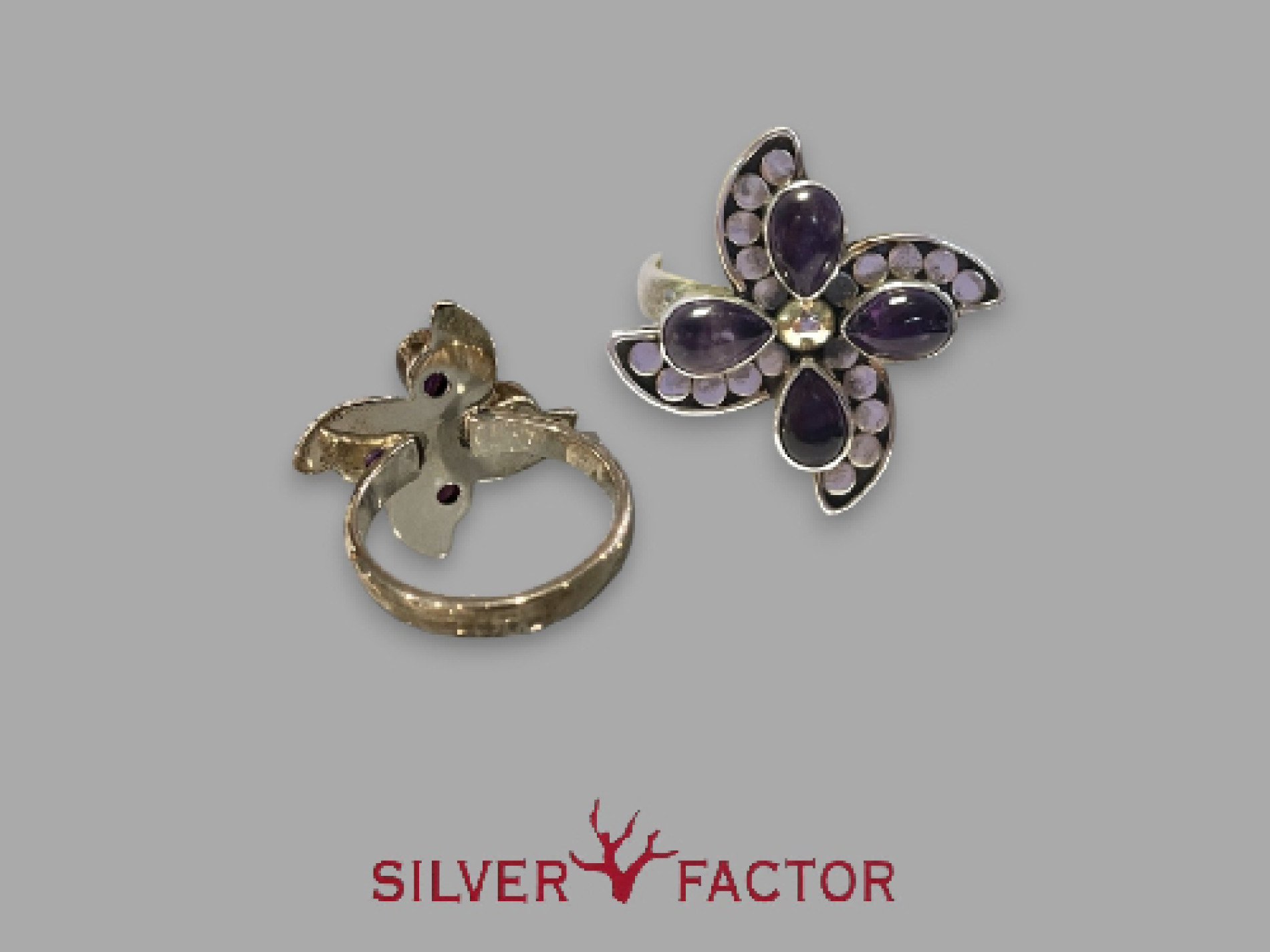 Amatista 4 cabujones+ flor ag tamaños14/16/18